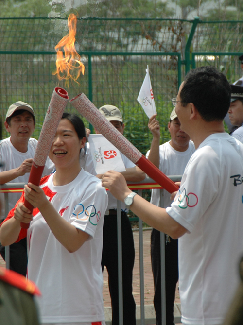 2008年5月23日,北京奧運火炬在上海傳遞,上午10點30分,來自太平洋保險的陳尉華擔(dān)任了上海站83號火炬手,以矯健的步伐奔跑完成了火炬?zhèn)鬟f。