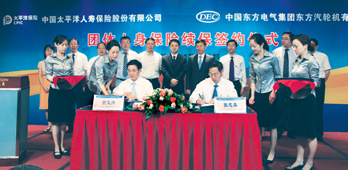 國富、壽險公司董事長金文洪,東方電氣股份有限公司總裁、東方汽輪機有限公司董事長溫樞剛,東方電氣股份有限公司副總裁、東方汽輪機有限公司總經(jīng)理張志