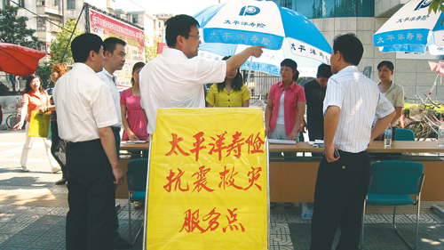 其來的地震災害,產、壽險陜西分公司克服困難,積極采取措施做好對受災客戶的理賠服務和對受災員工的慰問、資助工作。目前,兩家分公司員工人心穩(wěn)定,理賠