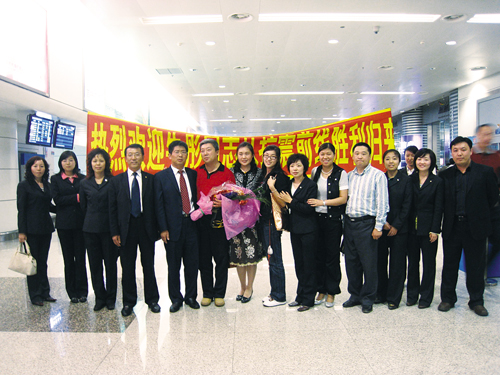 在吉林,吉林分公司總助陳廣華帶隊來到機場,迎接牛彤抗震救災(zāi)凱旋而歸,讓這位東北