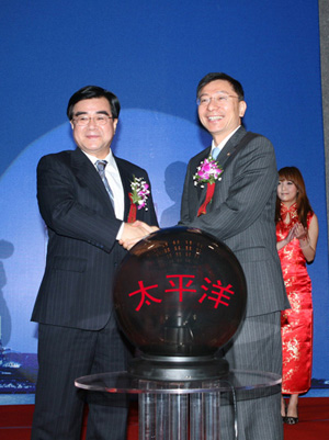 中國保監(jiān)會副主席周延禮(左)、中國太平洋保險(xiǎn)集團(tuán)董事長高國富為中國太平洋保險(xiǎn)航運(yùn)保險(xiǎn)事業(yè)總部的成立揭牌。 2009年12月3日,由上海金融服務(wù)辦、上海保監(jiān)局、復(fù)旦大學(xué)、中國太平洋保險(xiǎn)共同舉辦的航運(yùn)保險(xiǎn)(上海)國際研討會在上海西郊賓館召開。來自中國保監(jiān)會、上海市政府、上海金融辦、上海保監(jiān)局、上海市發(fā)改委、上海市建交委、上海市國稅、地稅局、上海市保險(xiǎn)行業(yè)協(xié)會、中國海事仲裁委員會上海分會、中國船級社上海分社、交通運(yùn)輸部、同業(yè)保險(xiǎn)公司、國際再保險(xiǎn)公司、銀行、公估行、律師、經(jīng)紀(jì)人、航運(yùn)機(jī)構(gòu)、高校、學(xué)術(shù)機(jī)構(gòu)及太平洋保險(xiǎn)等單位150余人參加了會議。
