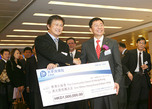高國富代表公司向香港聯(lián)交所贈送上市紀(jì)念品——代表誠信的“中國用戶滿意鼎”珍藏版,“中國用戶滿意鼎”由中國質(zhì)量協(xié)會于2005年授予中國太平洋保險。隨后,高國富代表公司向香港公益金捐贈100萬元港幣,用于慈善事業(yè)。香港公益金為香港非牟利及非政府資助之慈善機(jī)構(gòu),負(fù)責(zé)為所資助的社會福利機(jī)構(gòu)籌募捐款,以鼓勵社群積極參與及捐贈,共同建立一個充滿愛心的社會。
