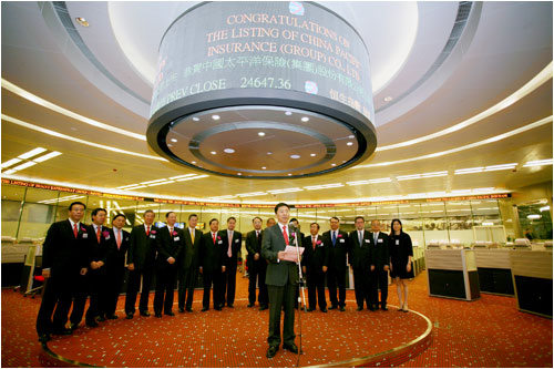 香港聯(lián)交所中國(guó)太保H股上市儀式現(xiàn)場(chǎng)