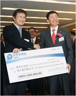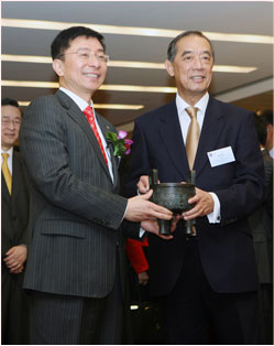 港聯(lián)交所主席夏佳理贈(zèng)送上市紀(jì)念品——代表 港公益金捐贈(zèng)100萬(wàn)港幣,用于慈善事業(yè)。